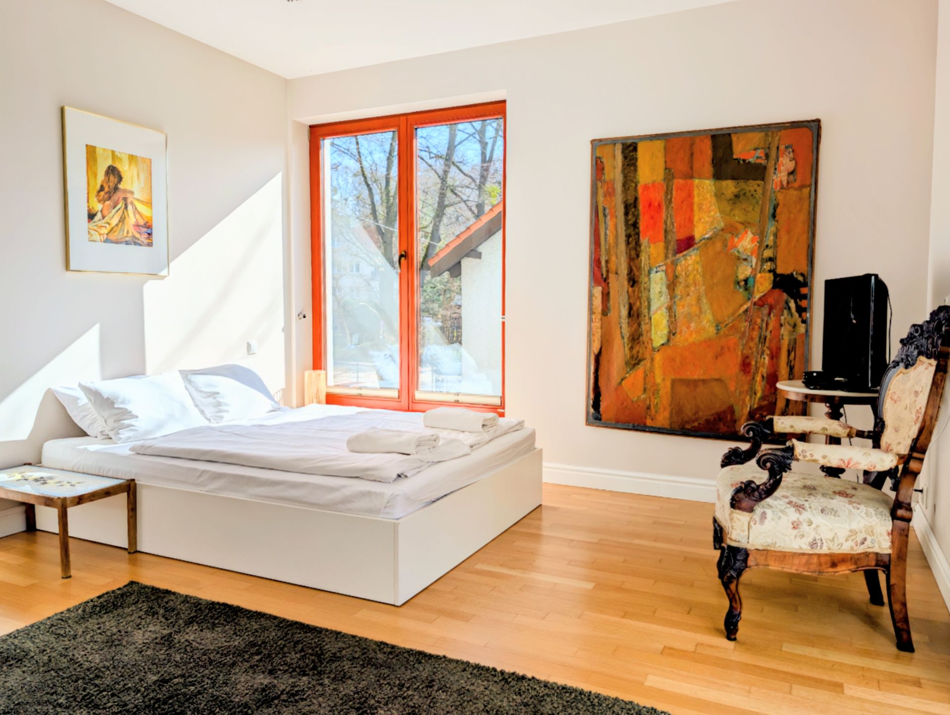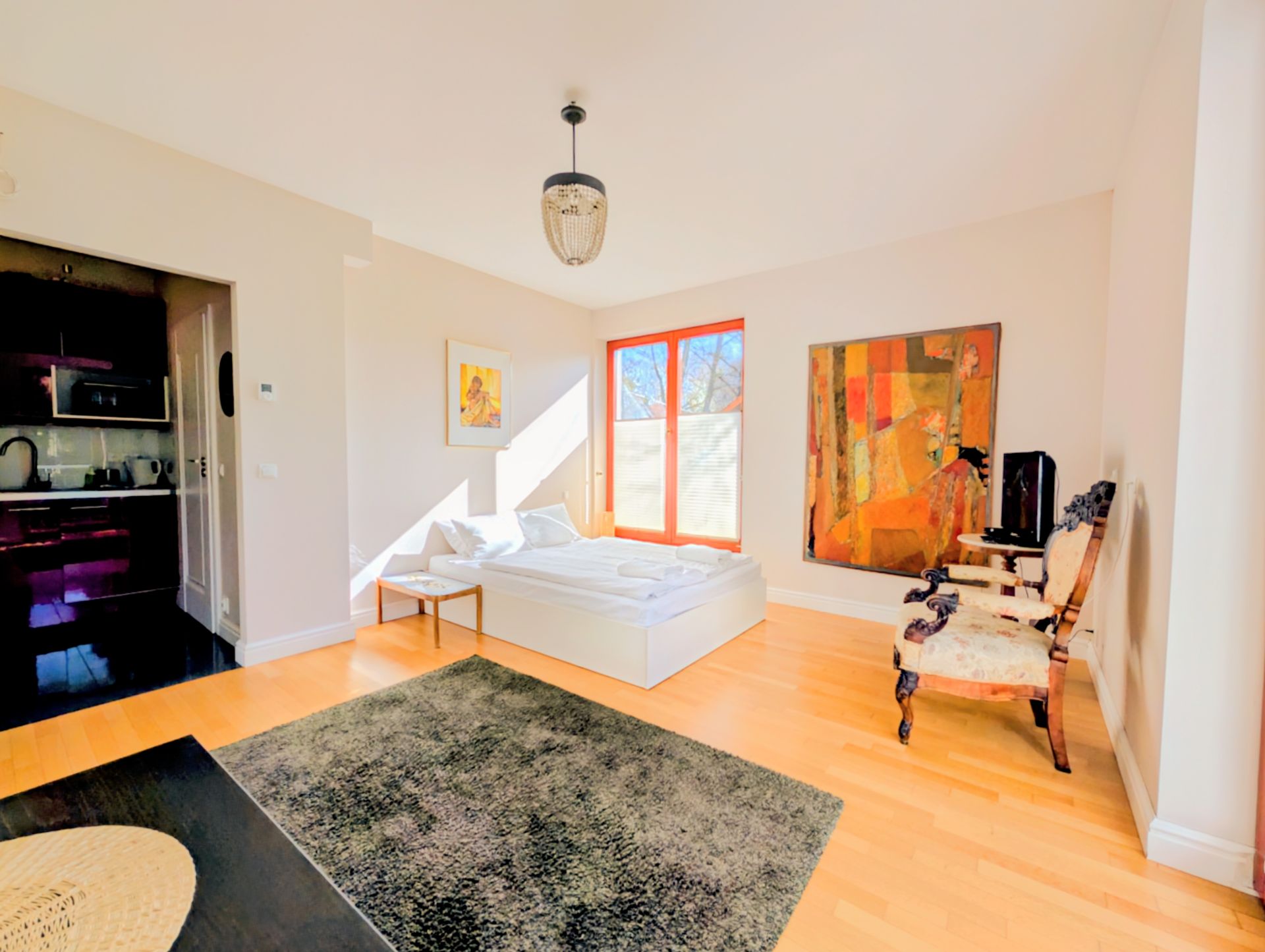 Apartament położony w urokliwej i ustronnej części Górnego Sopotu, w pobliżu lasu a z dala od zgiełku głównych ulic. Spacer do sopockiego deptaka zajmie ok 5 min, a do plaży 10 min. Mieszkanie znajduje się na pierwszym piętrze posesji z miejscem parkingowym. Apartament typu studio, przeznaczony jest dla dwóch osób, składa się z pomieszczenie z rozkładaną dwuosobową sofą, ze stołem i krzesłami oraz dużą szafą z rozsuwanymi drzwiami.